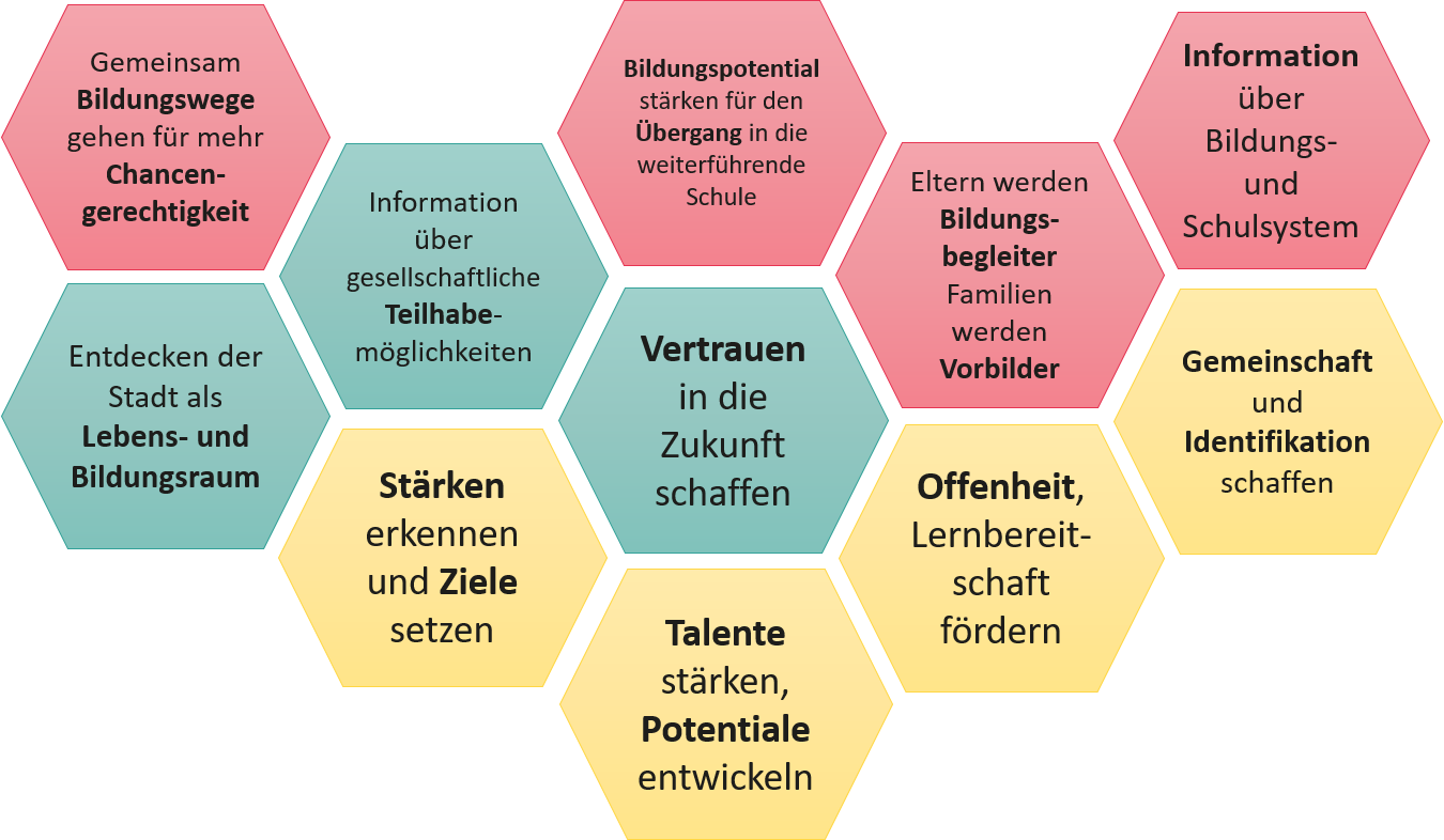 Familien, die sowohl Engagement als auch Entwicklungsbereitschaft zeigen und für die eine individuelle Bildungsbegleitung eine große Chance birgt. Die ganze Familie und ihre einzelnen Mitglieder sollen in ihrer Bildungsbiografie und den Möglichkeiten der gesellschaftlichen Teilhabe gestärkt werden.