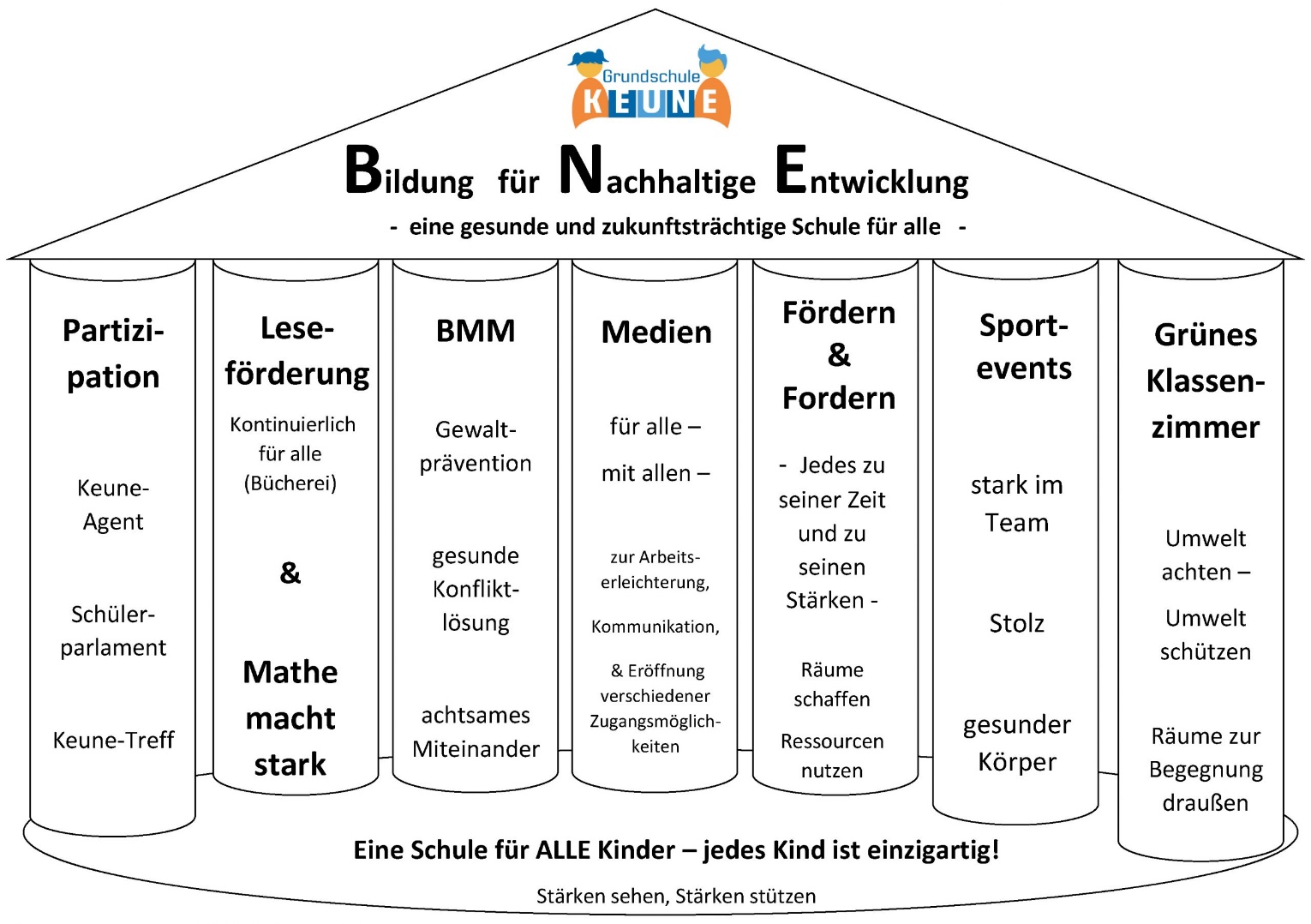 • Keune-Treff: Zwei Kinder bereiten diese Schulversammlung gemeinsam mit der Schulleitung vor und moderieren diese. Der Keune-Treff beginnt mit dem Schullied, es werden gute Leistungen und geehrt und gezeigt, was die Kinder alles gelernt haben. Am Ende tanzen wir den Keune-Tanz-Alarm.